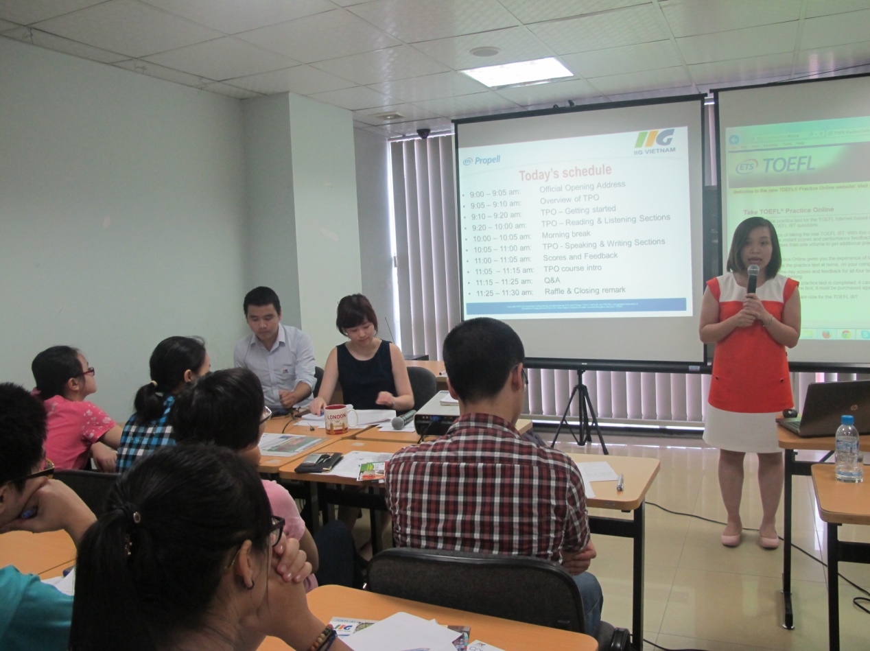 IIG Vietnam welcomed many students, graduates and parents attending the “TPO – TOEFL Practice Online, TOEFL iBT computer skills” seminar in Hanoi on 19th July 2014. This is a specialized seminar to share necessary skills for taking the TOEFL iBT test on the computer via TPO – ETS’ official practice tool for TOEFL iBT.
