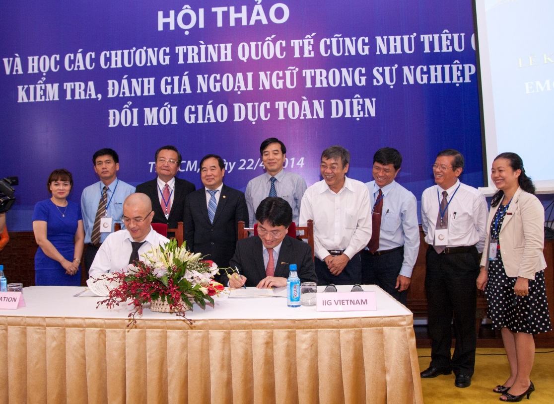 Being part of the activities chain happening during the “Education Development Festival 2014” in HCMC, IIG Vietnam and EMG Education have entered the Memorandum of Understanding (MOU) with the presence of many representatives from the Ministry of Education and Training and the Department of Education and Training HCMC. According to this MOU, both parties will collaborate to organize and execute the application of the assessment systems developed by both the Educational Testing Service (ETS) and the Educational Records Bureau (ERB) into school system in Hochiminh areas to help reform the system and sketch out the roadmap for the development of the education system in the future, bring about practical benefits for both the students and schools.