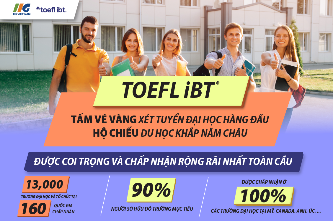 - Được đánh giá cao trong xét tuyển: Điểm TOEFL iBT giúp thí sinh tạo ấn tượng với hội đồng tuyển sinh và phản ánh chính xác năng lực sử dụng tiếng Anh trong môi trường học thuật, được sử dụng trong xét tuyển và đánh giá học bổng đại học.
