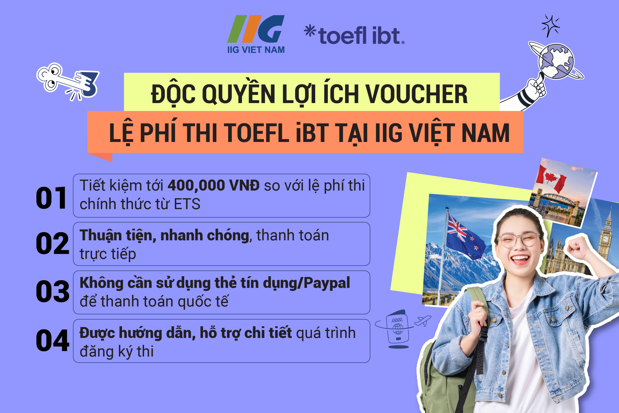 Cách 2: Mua Voucher thanh toán lệ phí thi TOEFL iBT tại IIG Việt Nam để được hỗ trợ nhanh chóng và nhận ưu đãi hấp dẫn: