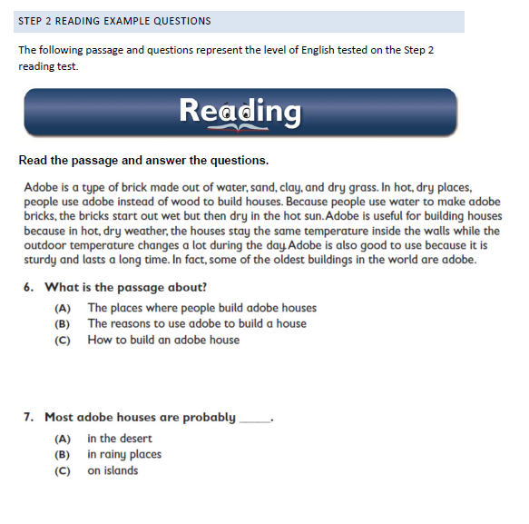 Câu hỏi mẫu bài thi Đọc hiểu Cấp độ 2: