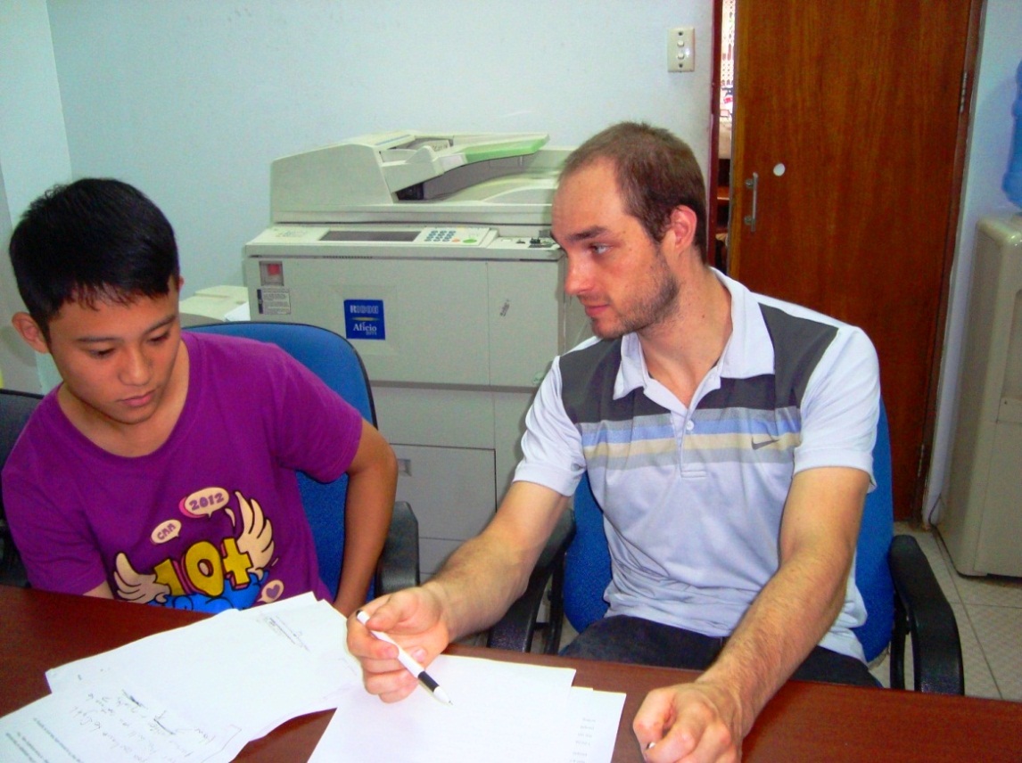 (Thầy giáo chữa bài Writing cho học viên ngoài giờ học)