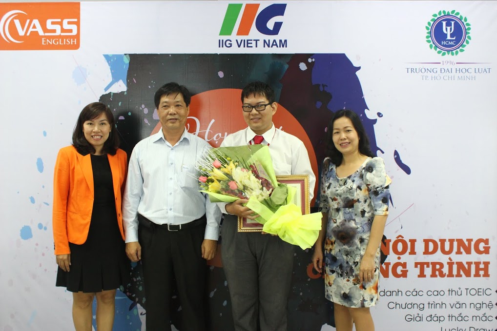 Ngày 17/1/2015, trong khuôn khổ buổi Họp mặt cuối năm tổ chức tại Đại học Luật TPHCM, IIG Việt Nam đã trao phần thưởng và vinh danh bạn Nguyễn Đức Thế Tâm – sinh viên Đại học Luật thành phố Hồ Chí Minh – với thành tích đạt điểm tối đa trên thang điểm 990 của bài thi TOEIC.