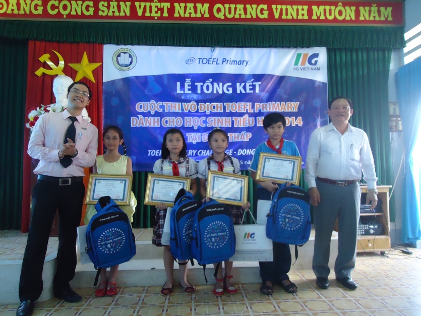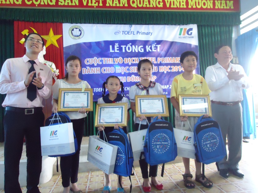 Tại Đồng Tháp đã diễn ra lễ vinh danh những thí sinh xuất sắc nhất cuộc thi Vô địch TOEFL Primary 2014