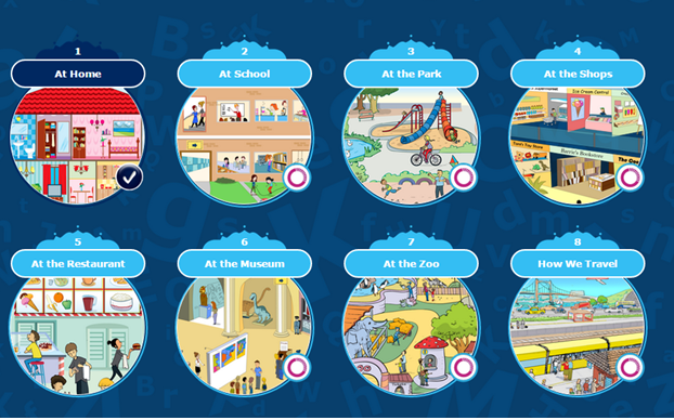 Giao diện ELC Primary – Các chủ đề rất gần gũi, thiết kế dạng hình ảnh bắt mắt.