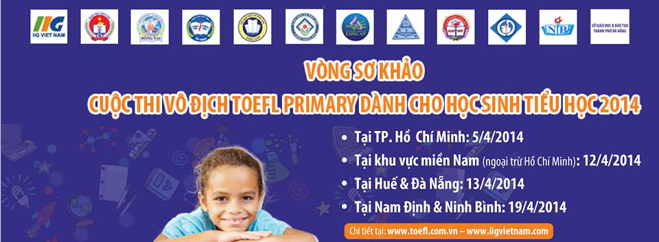 Tp. Hồ Chí Minh, ngày 5/4/2014, gần 5000 học sinh tiểu học tại Tp. Hồ Chí Minh đã bước vào Vòng Sơ khảo (Vòng 2) Cuộc thi Vô địch TOEFL Primary 2014 sau khi xuất sắc vượt qua Vòng 1. Đây là cuộc thi có quy mô toàn quốc do IIG Việt Nam – đại diện chính thức và duy nhất của Viện Khảo thí Giáo dục Hoa Kỳ (ETS) tại Việt Nam, phối hợp với Sở GD&ĐT các tỉnh thành phố trên cả nước tổ chức dành riêng cho học sinh lứa tuổi tiểu học từ lớp 3 đến 5. Tại Tp. Hồ Chí Minh, với sự phối hợp tổ chức của Sở GD&ĐT TP.HCM, Vòng 1 của cuộc thi đã thu hút gần 9000 học sinh giỏi tiếng Anh từ 191 trường tiểu học trên địa bàn Thành phố tham gia.