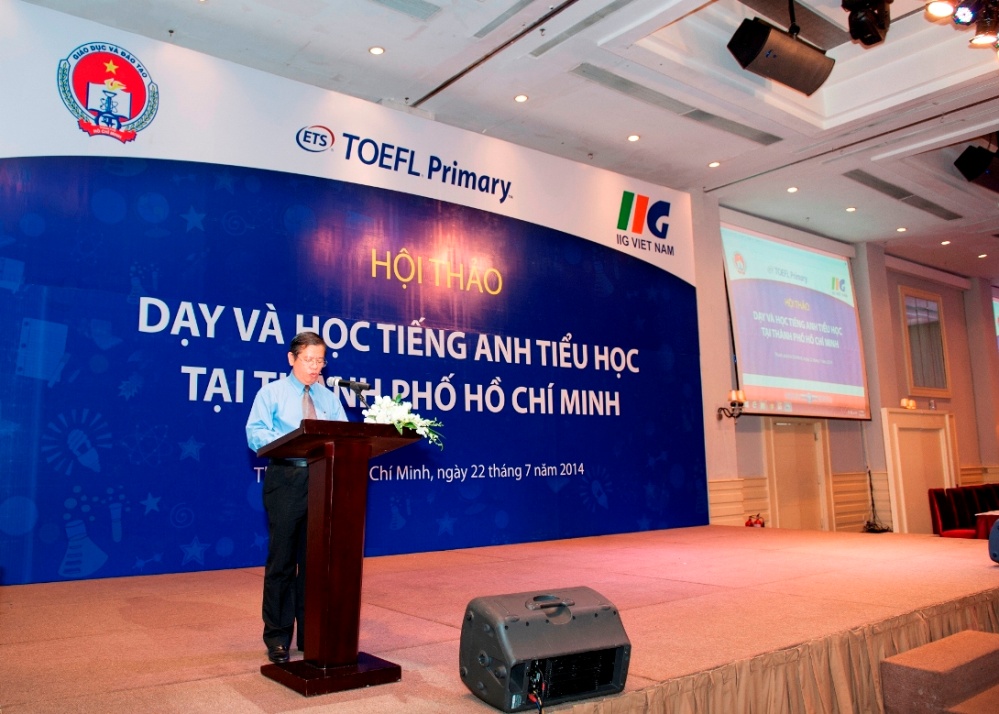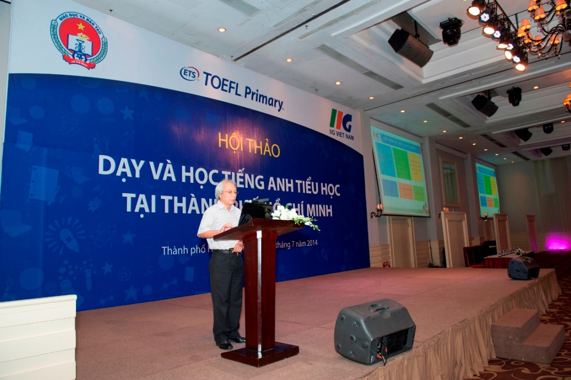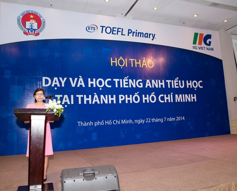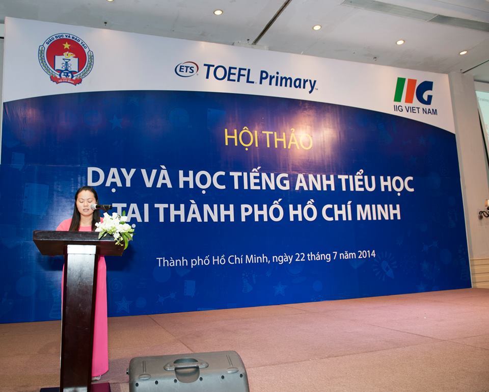 Tham dự Hội thảo với tư cách khách mời, IIG Việt Nam đã có phần trình bày những thông tin cập nhật và chuyên sâu liên quan đến bài thi TOEFL Primary. Theo công văn 384/GDĐT-VP của Sở Giáo dục & Đào tạo TP.HCM ngày 17/2/2014, TOEFL Primary (bài thi đánh giá năng lực sử dụng tiếng Anh của học sinh tiểu học) chính thức được sử dụng trong quy trình đánh giá kết quả giảng dạy và học tập tiếng Anh của giáo viên và học sinh thành phố. Tại Hội thảo này, Ông Nguyễn Phương Sửu – Phó Chủ tịch phụ trách đào tạo IIG Việt Nam đã cung cấp cho cử tọa bức tranh toàn cảnh về TOEFL Primary (cách đánh giá năng lực tiếng Anh của học sinh tiểu học, TOEFL Primary đo lường những gì và như thế nào, năng lực tiếng Anh của học sinh tiểu học nhìn từ cuộc thi Vô địch TOEFL Primary). Để tạo điều kiện thuận lợi cho giáo viên giúp học sinh làm quen và chuẩn bị cho bài thi TOEFL Primary, Bà Từ Thị Minh Thúy – Chuyên gia giáo dục IIG Việt Nam đã có phần trình bày chi tiết « Giới thiệu tài liệu giảng dạy tiếng Anh theo định hướng chuẩn quốc tế TOEFL Primary ». Trong đó bà Từ Thị Minh Thúy đưa ra các gợi ý và hướng dẫn sử dụng một số tài liệu giảng dạy phù hợp, bao gồm sách dạy tiếng Anh tổng quát, sách dạy và các học liệu theo định hướng TOEFL Primary…