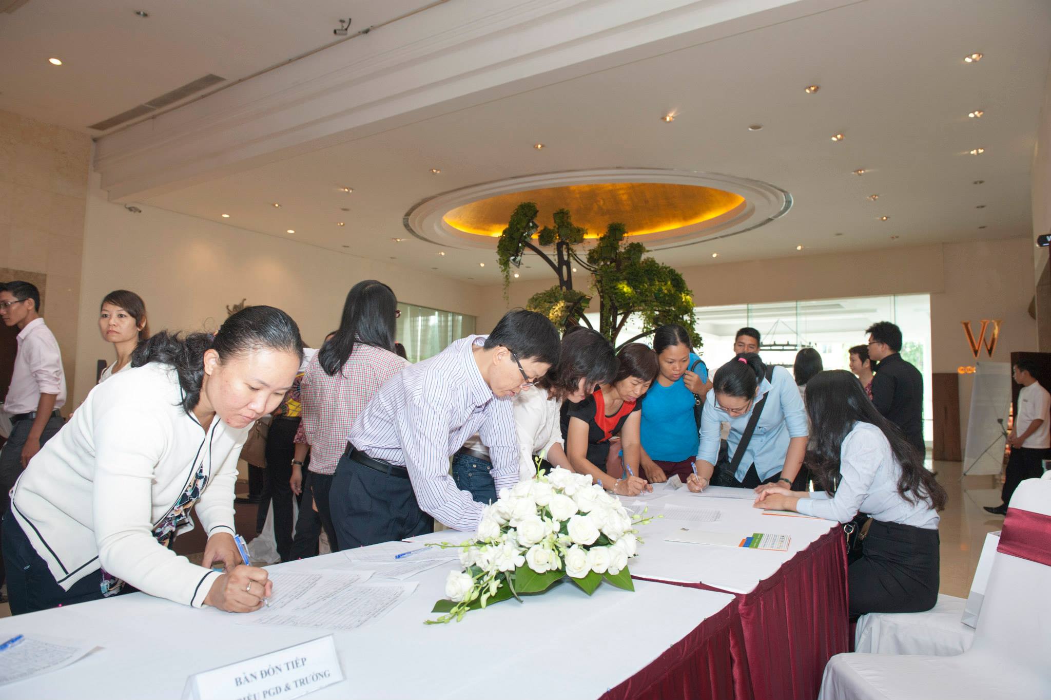 Các giáo viên và cán bộ đăng ký nhận tài liệu trước giờ Hội thảo