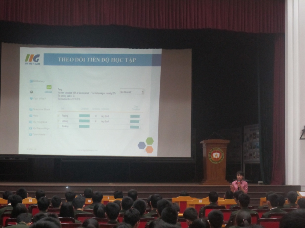 Hà Nội ngày 5/3/2014, gần 500 chiến sỹ trẻ của Học viện An ninh Nhân dân đã có một buổi giao lưu đầy hứng khởi để tìm hiểu về EDO (English Discoveries Online) – chương trình dạy và học tiếng Anh trực tuyến do Viện Khảo thí Giáo dục Hoa Kỳ phát triển và được độc quyền cung cấp tại Việt Nam bởi IIG Việt Nam. Buổi giao lưu “English Discoveries Online – Giải pháp nâng cao hiệu quả dạy và học tiếng Anh” còn có sự tham gia của lãnh đạo, cán bộ, giáo viên các khoa và phòng ban trong Học viện.