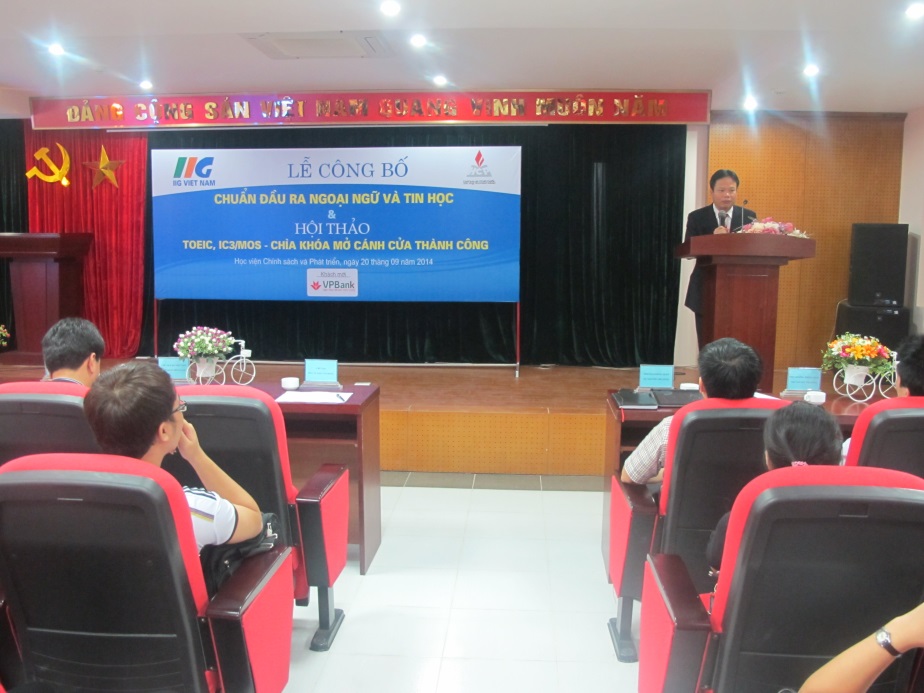 Trong bối cảnh hội nhập và toàn cầu hóa, đặc biệt khi ASEAN chuẩn bị xóa bỏ hoàn toàn hàng rào thuế quan vào năm tới, mức độ cạnh tranh trên thị trường lao động tại Việt Nam ngày càng gay gắt. Điều này đặt ra cho các cơ sở đào tạo yêu cầu nâng cao chất lượng đào tạo, tối ưu hóa chất lượng nguồn nhân lực cung cấp cho thị trường, nhằm mục tiêu duy trì và củng cố uy tín, thu hút học sinh, sinh viên cho trường mình. Đây chính là cơ sở để Học viện Chính sách và Phát triển ký kết với IIG Việt Nam Biên bản ghi nhớ về việc nâng cao trình độ ngoại ngữ, tin học cho giảng viên và sinh viên của Học viện. Hoạt động ký kết được tổ chức trong khuôn khổ Lễ Công bố Chuẩn Ngoại ngữ và Tin học – Học viện Chính sách và Phát triển ngày 20/9/2014 tại Hà Nội.