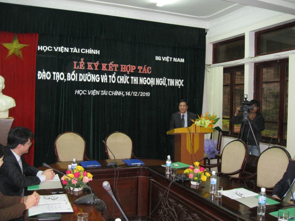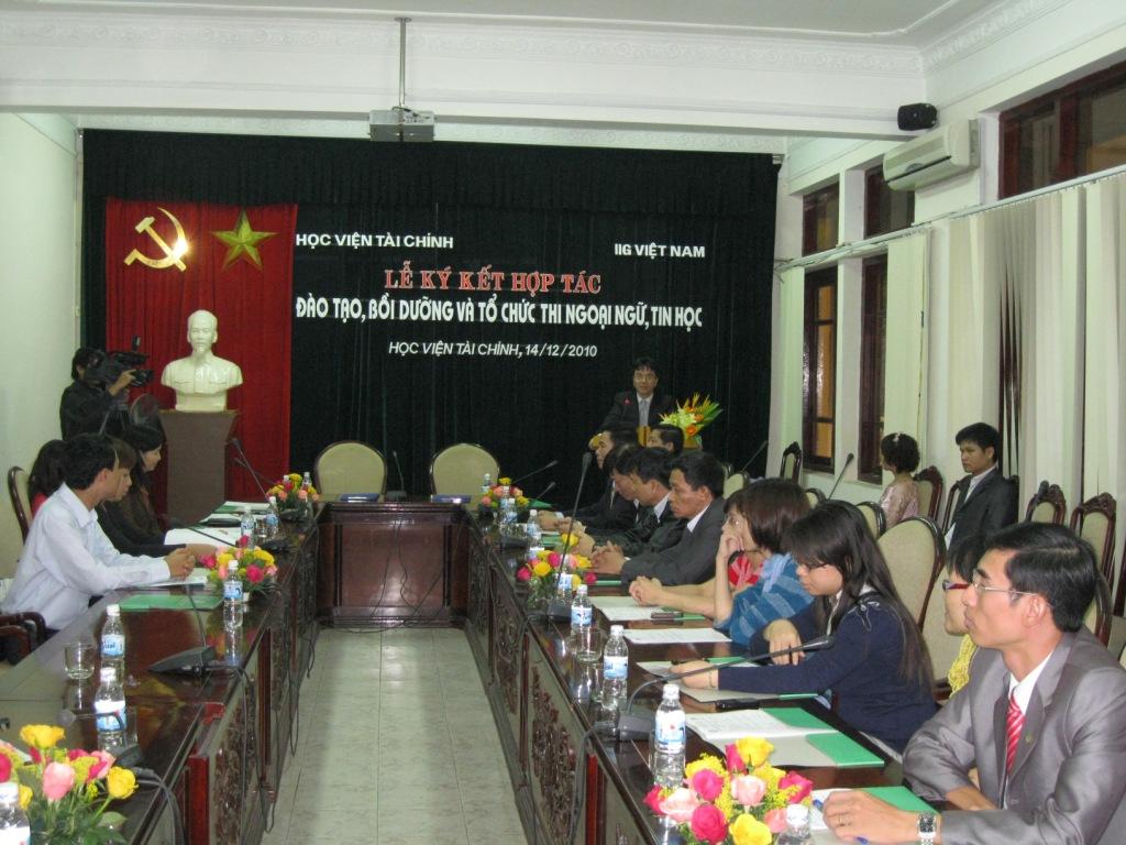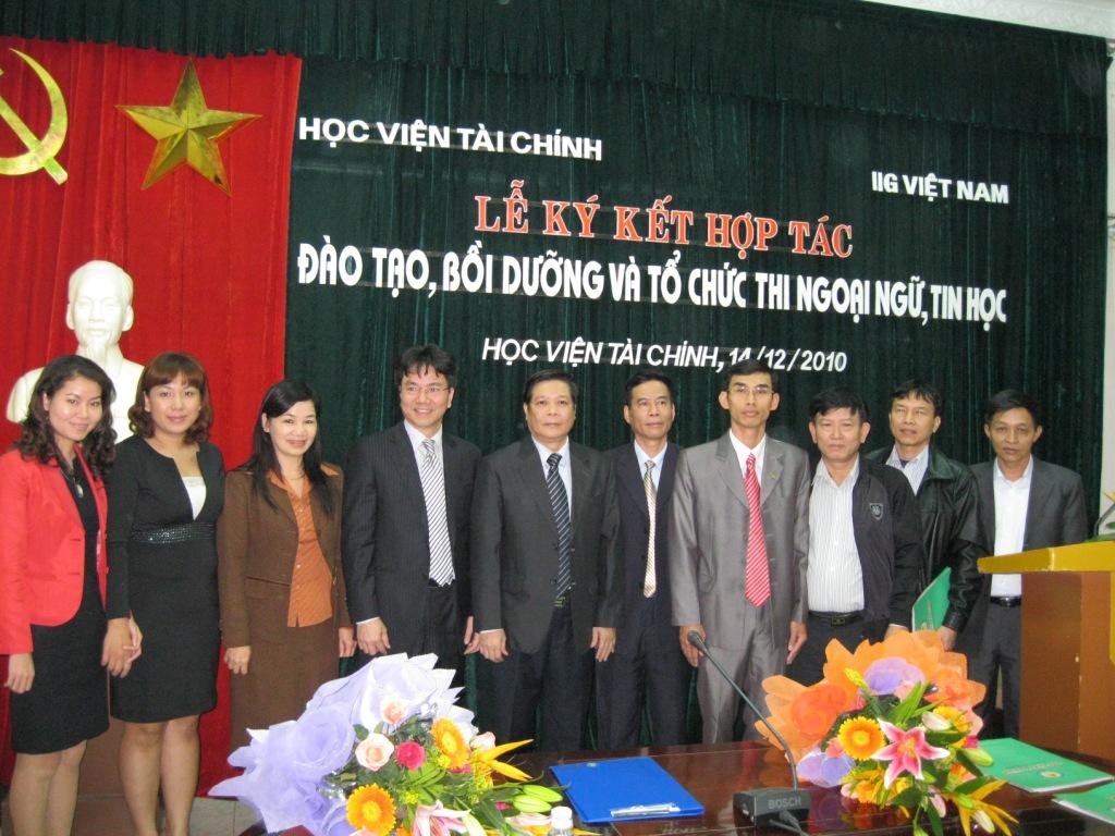 Sáng ngày 14 tháng 12 năm 2010, Công ty IIG Việt Nam đã chính thức ký kết thoả thuận hợp tác với Học Viện Tài Chính. Với thoả thuận hợp tác này, IIG Việt Nam sẽ phối hợp với Học Viện Tài Chính, tiến hành hợp tác triển khai các bài thi Tiếng Anh, Tin Học theo chuẩn quốc tế tại Học Viện Tài Chính.