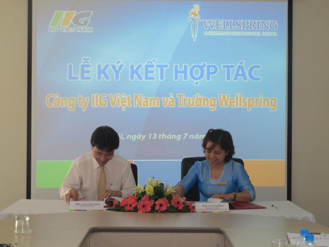 Ngày 13 tháng 7 năm 2012, IIG Việt Nam – Đại diện của Viện Khảo thí Giáo dục Hoa Kỳ tại Việt Nam và trường Phổ thông Song ngữ Liên cấp Wellspring đã cùng ký kết biên bản ghi nhớ (MOU) về việc hợp tác nhằm nâng cao chất lượng đào tạo tại trường Wellspring. Đây là bước khởi đầu cho mối quan hệ hợp tác chiến lược lâu dài cùng phát triển giữa hai bên.