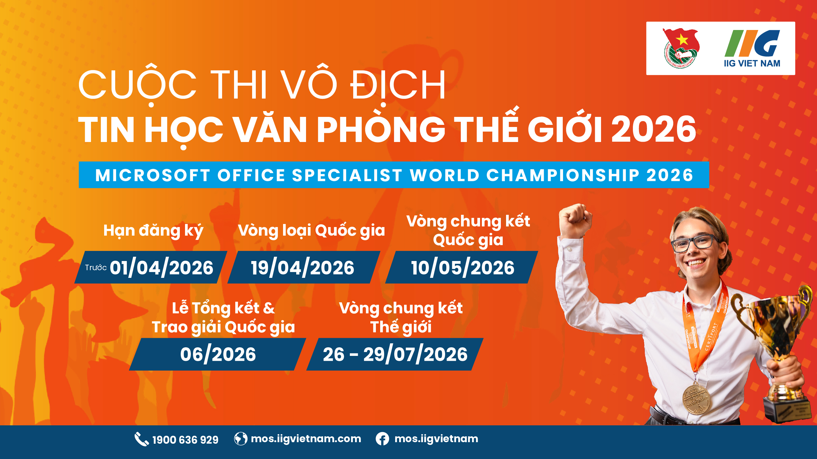 Trung ương Đoàn TNCS Hồ Chí Minh phối hợp với IIG Việt Nam chính thức khởi động mùa giải mới cuộc thi Vô địch Tin học văn phòng thế giới 2026 (MOS World Championship 2026) dành cho học sinh, sinh viên từ 13 – 22 tuổi trên toàn quốc.