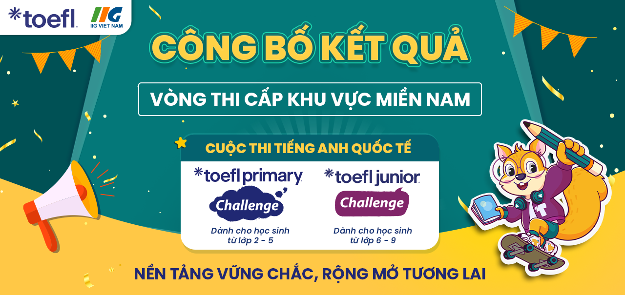 Ban tổ chức (BTC) Cuộc thi tiếng Anh quốc tế TOEFL Challenge năm học 2025 – 2026 tại Khu vực Miền Nam xin chúc mừng các thí sinh đã hoàn thành Vòng thi cấp Khu vực và các thí sinh xuất sắc nhất giành quyền tham dự Vòng Chung kết Quốc gia.