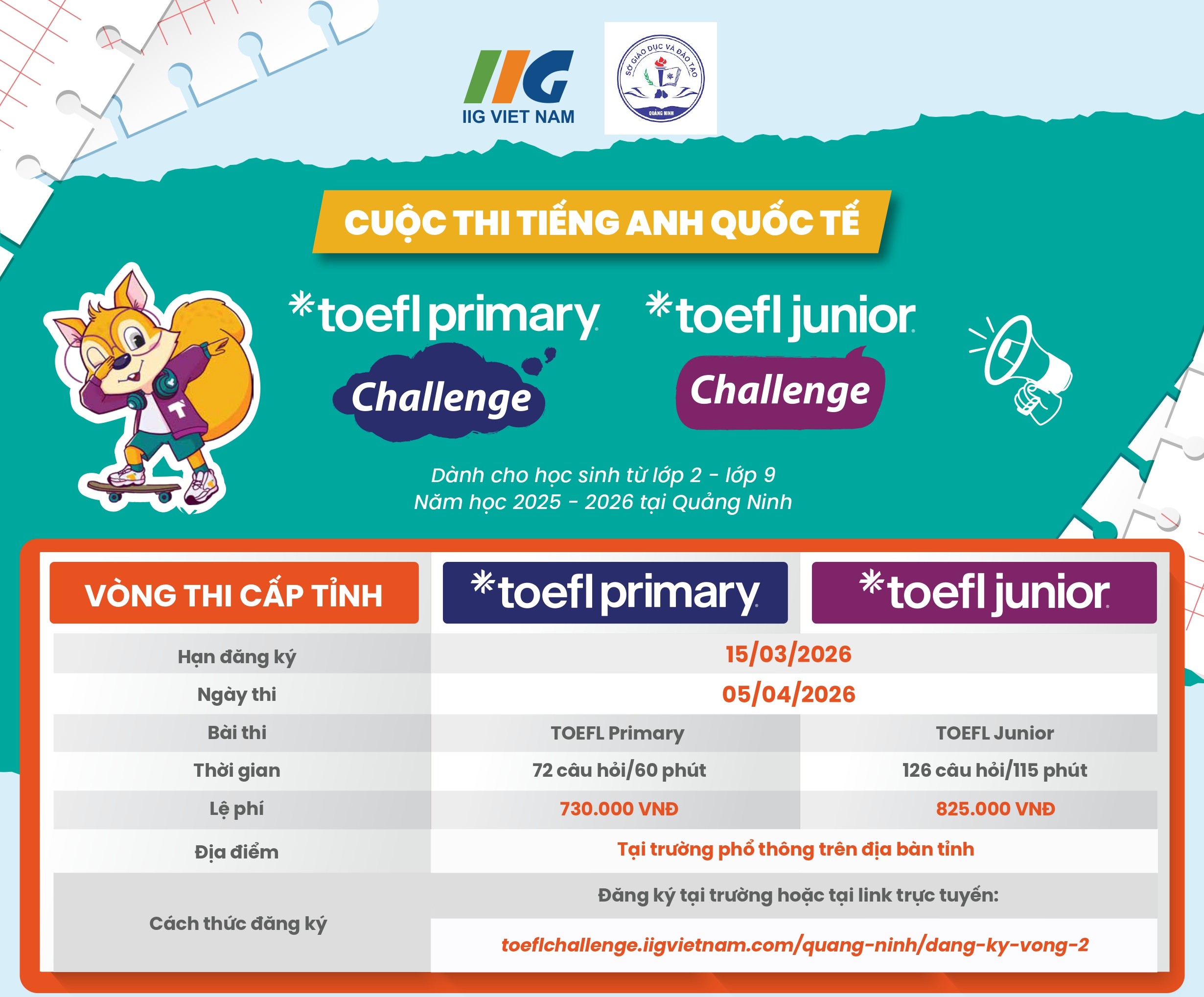 – Đăng ký tham gia trực tuyến tại link: https://toeflchallenge.iigvietnam.com/quang-ninh/dang-ky-vong-2