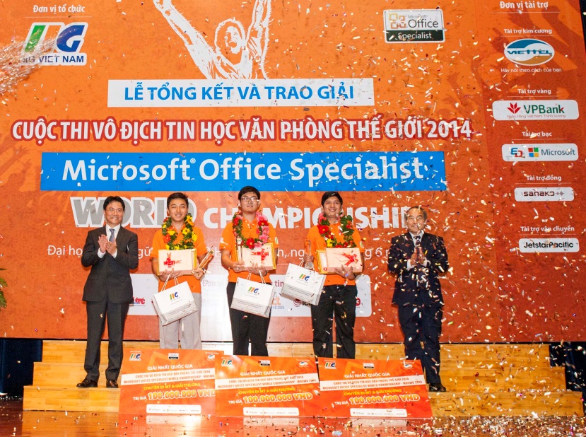 The MOSWC 2014 has come to an end with honor given to 3 young IT talents of Southern provinces. Surpassing thousands of candidates coming from 174 school teams nationwide, they have become MOS ambassadors, who will represent Vietnam to compete as National Champions at the World Championship in California, USA from July 27 to 30, 2014. The MOSWC 2014 has also shown substantial progress of high school students since the title of “MOS ambassador” has been awarded to one of them for the first time.