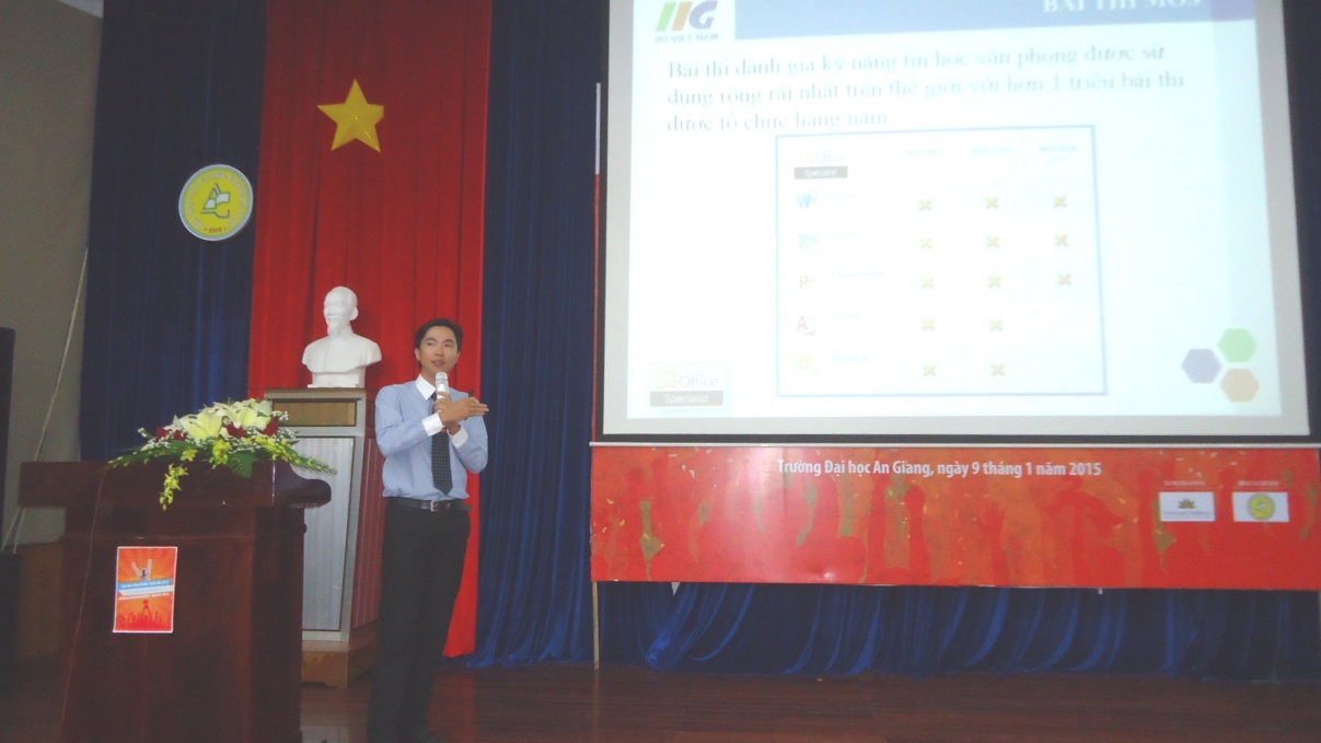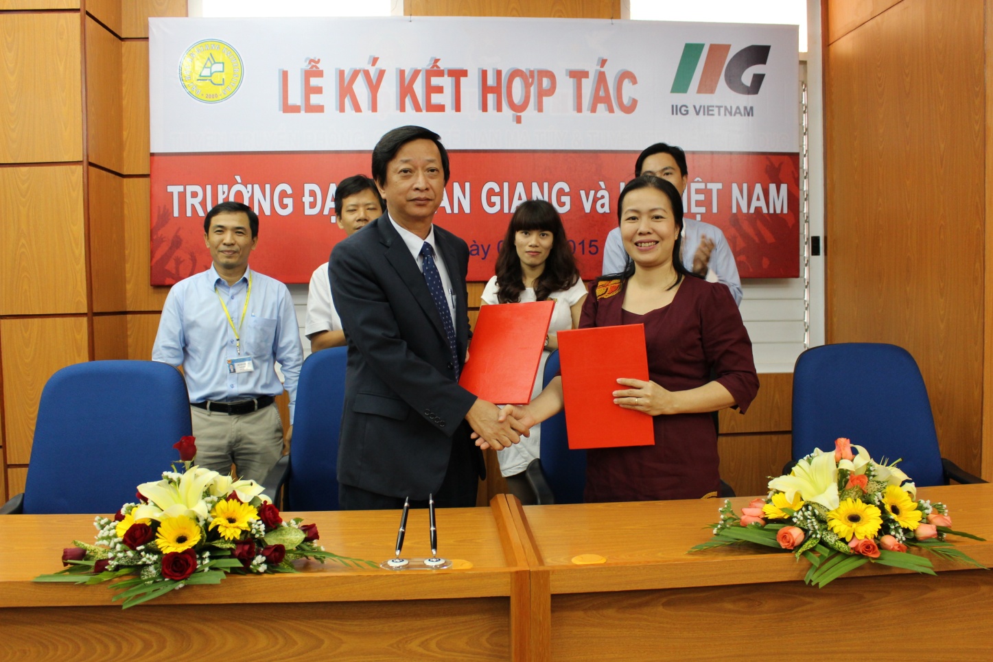 Cùng ngày 9/1/2015, Đại học An Giang và IIG Việt Nam đã ký kết Thỏa thuận Hợp tác về việc chuẩn hóa trình độ Tin học cho sinh viên Trường Đại học An Giang với chương trình tin học quốc tế MOS.
