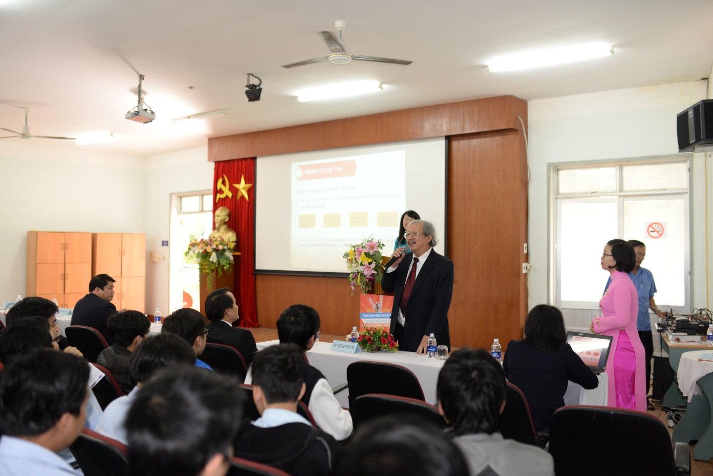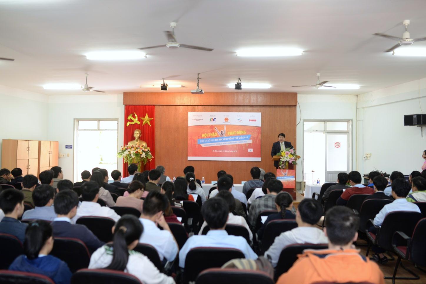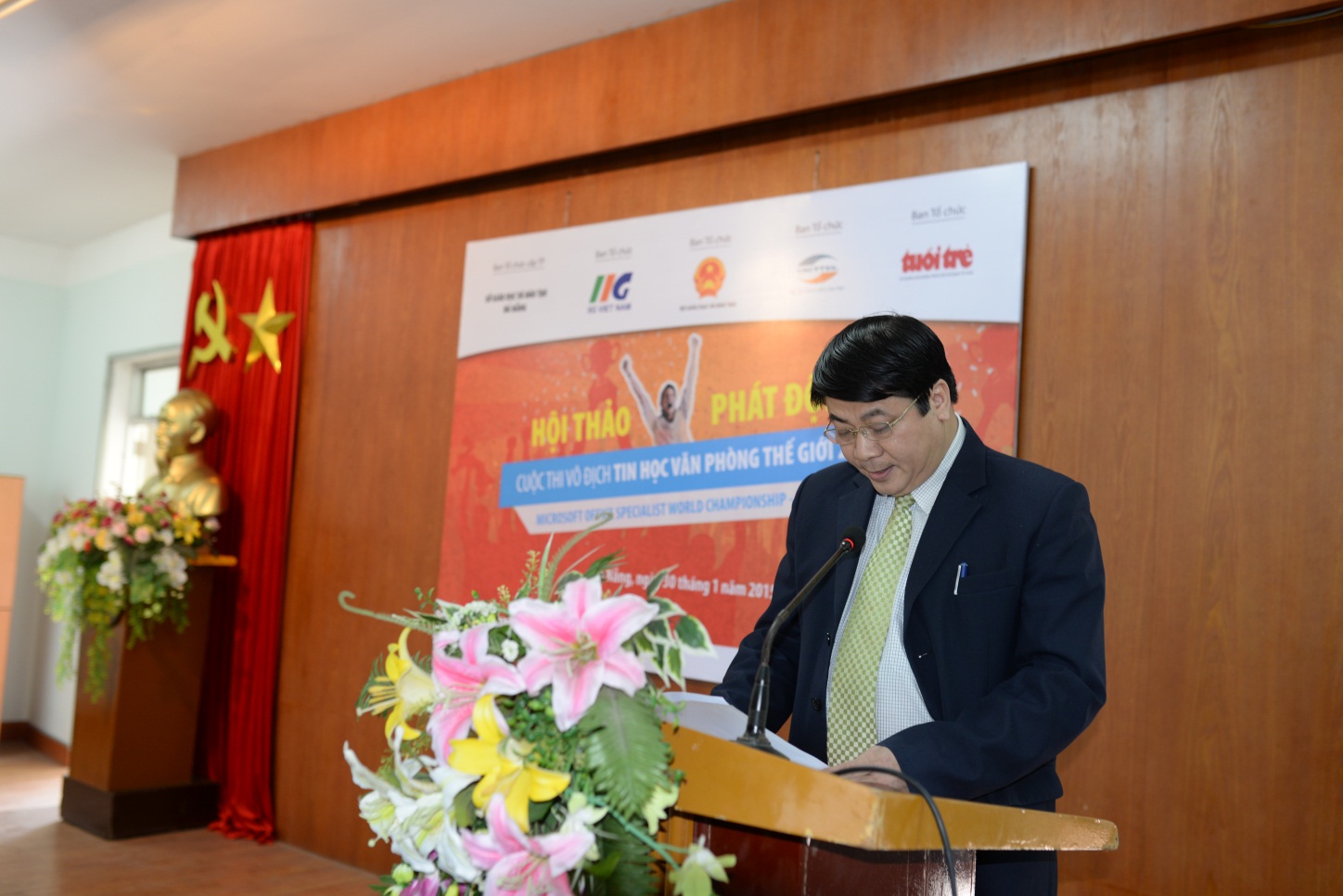Ông Nguyễn Đình Vĩnh, Phó Giám đốc Sở Giáo dục và Đào tạo Đà Nẵng, phát biểu tại Hội thảo phát động MOSWC 2015 tại Đà Nẵng