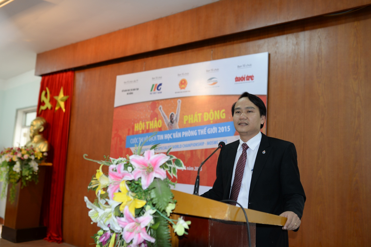 Ông Đoàn Văn Ninh, Phó Vụ trưởng Vụ Giáo dục Trung học – Bộ Giáo dục và Đào tạo, phát biểu tại Hội thảo phát động MOSWC 2015 tại Đà Nẵng
