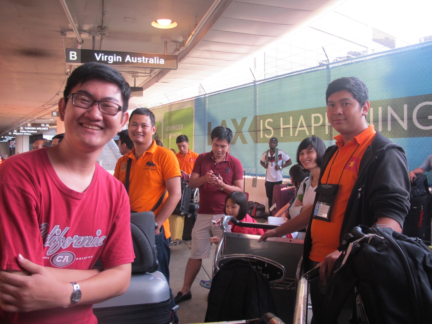 Tuy phải trải qua mười mấy tiếng trên máy bay, nhưng khi đáp xuống sân bay Los Angeles (LAX), sự hào hứng đã xóa tan mệt mỏi của 3 chàng trai.