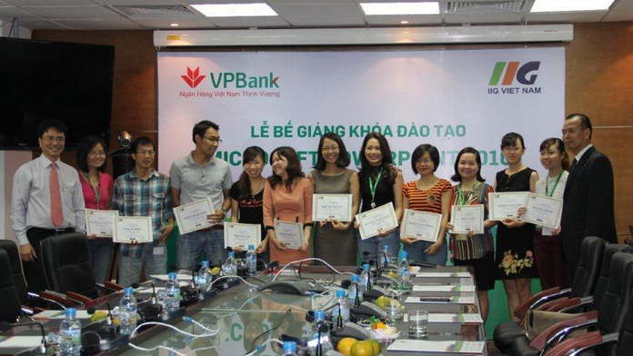 Ông Đoàn Hồng Nam – Chủ tịch IIG Việt Nam trao chứng chỉ hoàn thành khóa học cho các học viên Khóa đào tạo Microsoft PowerPoint của Ngân hàng VPBank