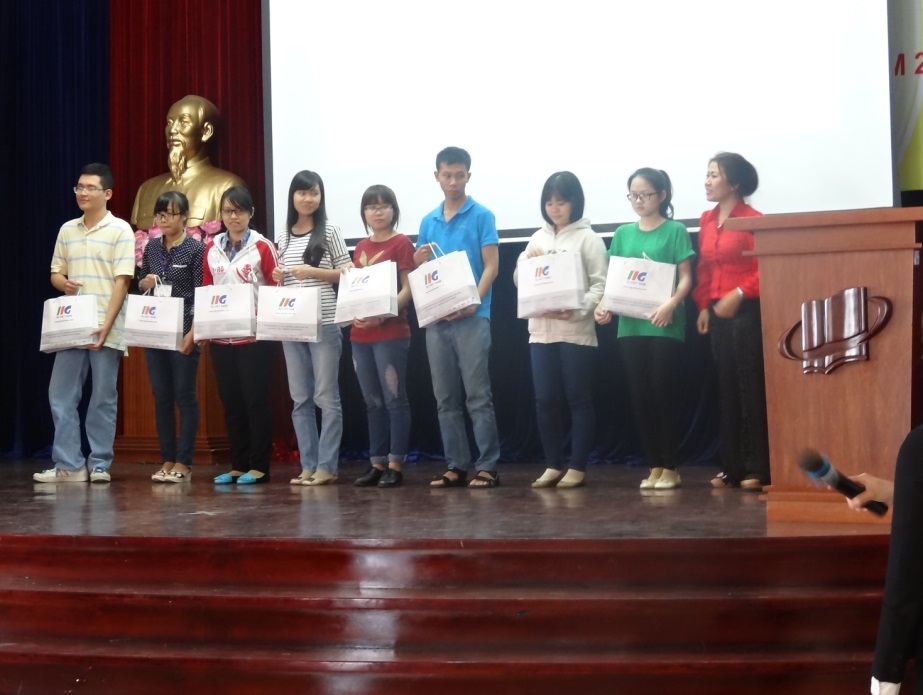 Đại diện IIG Việt Nam trao quà cho các sinh viên tham gia phần giao lưu