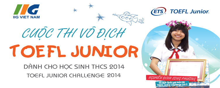 TOEFL Junior Challenge 2014 là cuộc thi tiếng Anh duy nhất tại Việt Nam dành cho học sinh THCS sử dụng các bài thi quốc tế của Viện Khảo thí Giáo dục Hoa Kỳ (ETS) – TOEFL Junior và TPO (TOEFL Practice Online) để làm tiêu chuẩn đánh giá thí sinh tham dự.