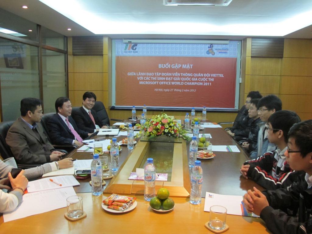 Sáng nay, 27 tháng 2 năm 2012, tại trụ sở công ty IIG Việt Nam, Ban tổ chức cuộc thi Microsoft Office World Champion (MOWC) 2011, đã tổ chức Buổi gặp mặt giữa Lãnh đạo Tập đoàn Viễn thông Quân đội Viettel – nhà tài trợ Kim Cương với các em đạt giải cuộc thi MOWC 2011.