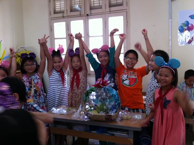 Bé Phùng Thanh Hà (thứ ba từ trái) cùng các bạn