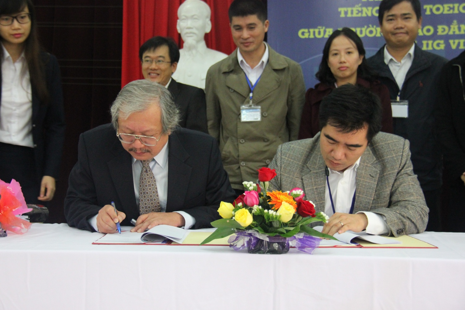 Để thực hiện thành công các nội dung hợp tác trên, IIG Việt Nam sẽ xây dựng, tư vấn chương trình áp chuẩn tiếng Anh, Tin học quốc tế cho Trường và đồng hành cùng nhà trường trong quá trình này. Cụ thể, về tiếng Anh, IIG Việt Nam sẽ tổ chức thi xếp lớp đầu vào theo chuẩn TOEIC cho sinh viên của trường, tổ chức thi kiểm tra trình độ TOEIC đối với cán bộ và giảng viên, tổ chức hội thảo giới thiệu về bài thi TOEIC; chuẩn hóa và bồi dưỡng kỹ năng giảng dạy tiếng Anh cho giáo viên tiếng Anh của Trường với chương trình dạy và học tiếng Anh trực tuyến English Discoveries Online (EDO), tập huấn giảng dạy tiếng Anh theo định hướng chuẩn quốc tế TOEIC…