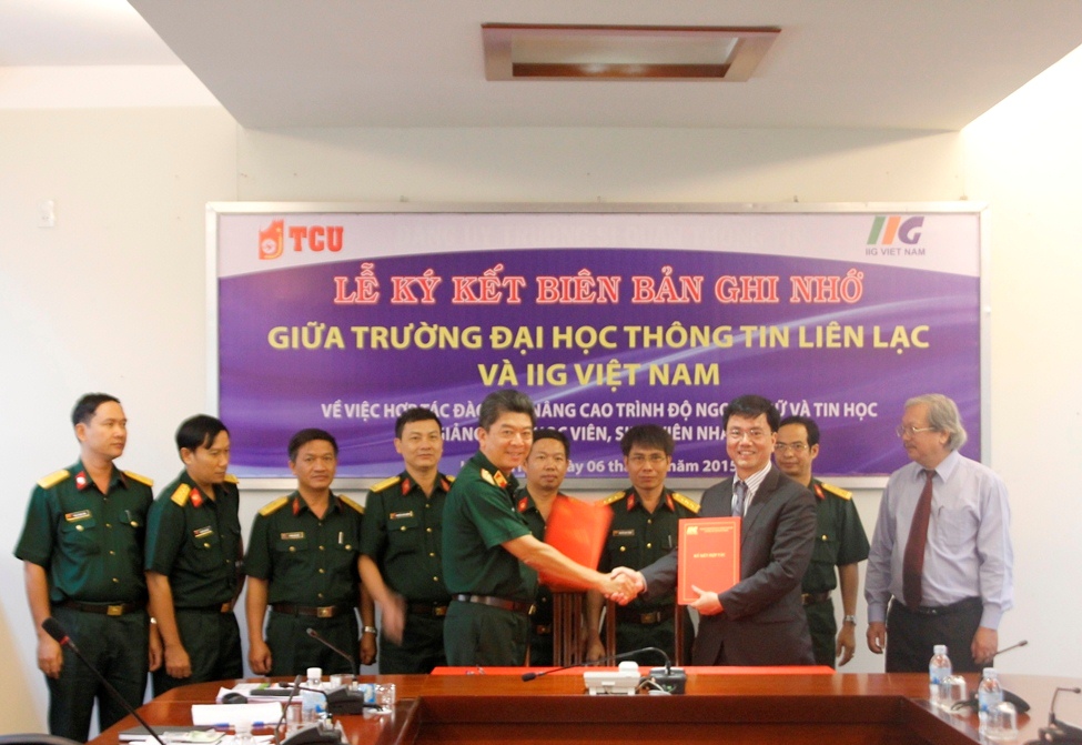 Ngày 6/5/2015, Trường Đại học Thông tin liên lạc và IIG Việt Nam đã ký kết thỏa thuận hợp tác triển khai các các bài thi tiếng Anh và Tin học theo chuẩn quốc tế tại Trường.