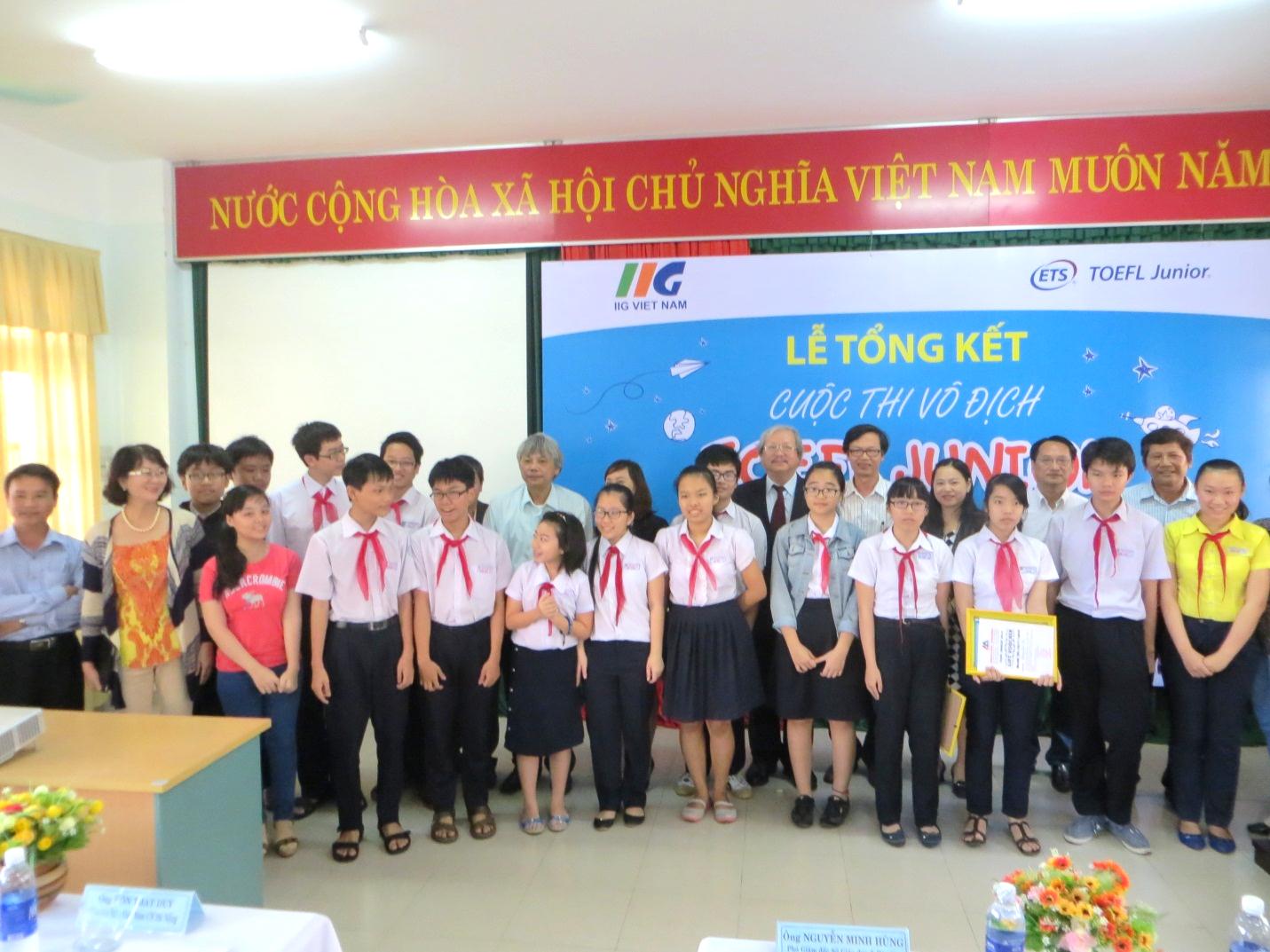 Đà Nẵng, ngày 5/3/2015, BTC cuộc thi Vô địch TOEFL Junior 2014 dành cho học sinh THCS đã vinh danh và trao giải cho các thí sinh và trường xuất sắc trong cuộc thi tại khu vực Đà Nẵng. Cuộc thi do IIG Việt Nam – Đại diện chính thức và duy nhất của Viện Khảo thí Giáo dục Hoa Kỳ (ETS) tại Việt Nam phối hợp với các Sở Giáo dục và Đào tạo tỉnh thành phố trên cả nước tổ chức. Lễ Tổng kết Cuộc thi Vô địch TOEFL Junior 2014 tại Đà Nẵng có sự tham gia của Lãnh đạo Sở Giáo dục và Đào tạo Đà Nẵng, đại diện Phòng Giáo dục Trung học – Sở GD&ĐT Đà Nẵng, các Phòng Giáo dục quận huyện, cũng như đại diện Ban giám hiệu các trường THCS đạt thành tích cao và các thí sinh xuất sắc của cuộc thi tại Đà Nẵng.
