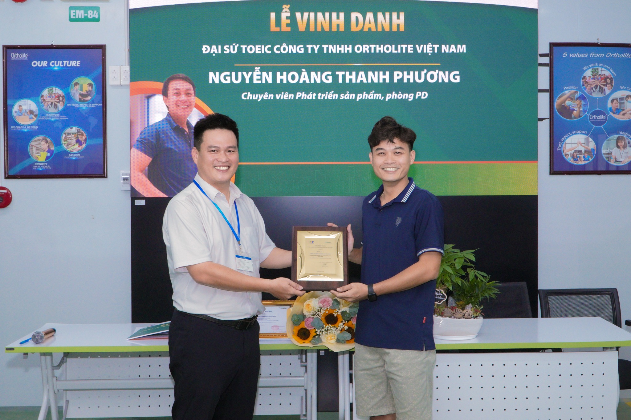 Chia sẻ tại buổi lễ, ông Mang Quốc Đạt – Phó Phòng Kinh doanh Công ty TNHH OrthoLite Việt Nam cho biết: “Tập đoàn OrthoLite là tập đoàn đa quốc gia, làm việc với nhiều khách hàng quốc tế. Tiếng Anh được sử dụng như một ngôn ngữ chung trong môi trường làm việc, vì vậy việc phát triển năng lực tiếng Anh đóng vai trò rất quan trọng đối với mỗi cá nhân. Thành tích của Thanh Phương không chỉ là kết quả đáng tự hào của riêng bạn mà còn là biểu tượng tích cực về tinh thần học hỏi, chủ động trau dồi tiếng Anh mỗi ngày để toàn thể nhân sự trong công ty cùng noi gương.”
