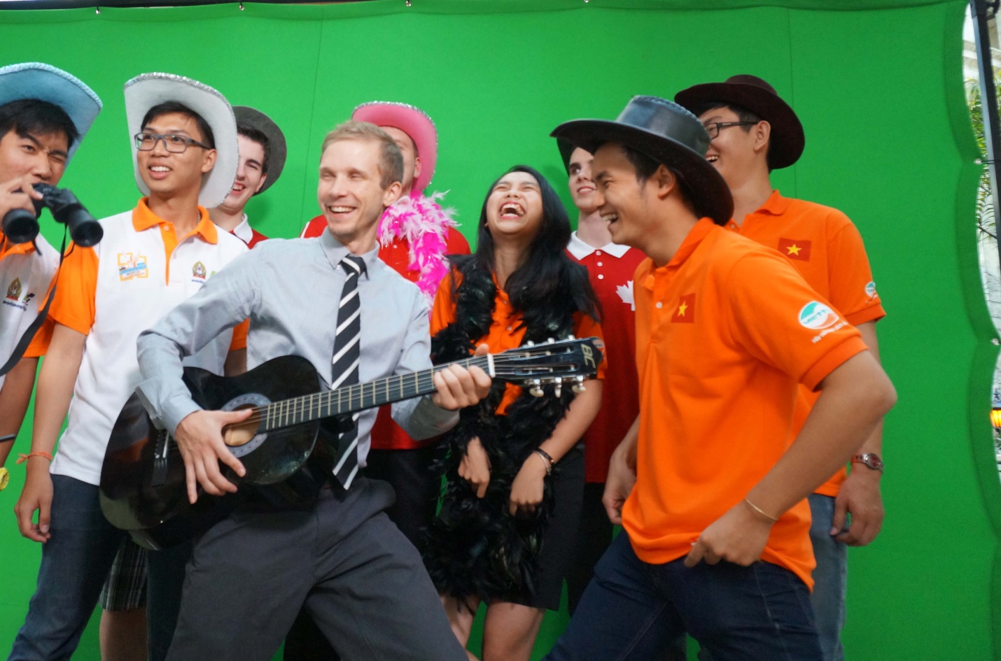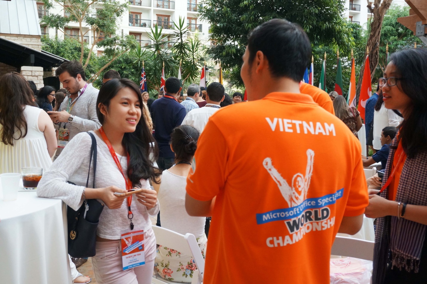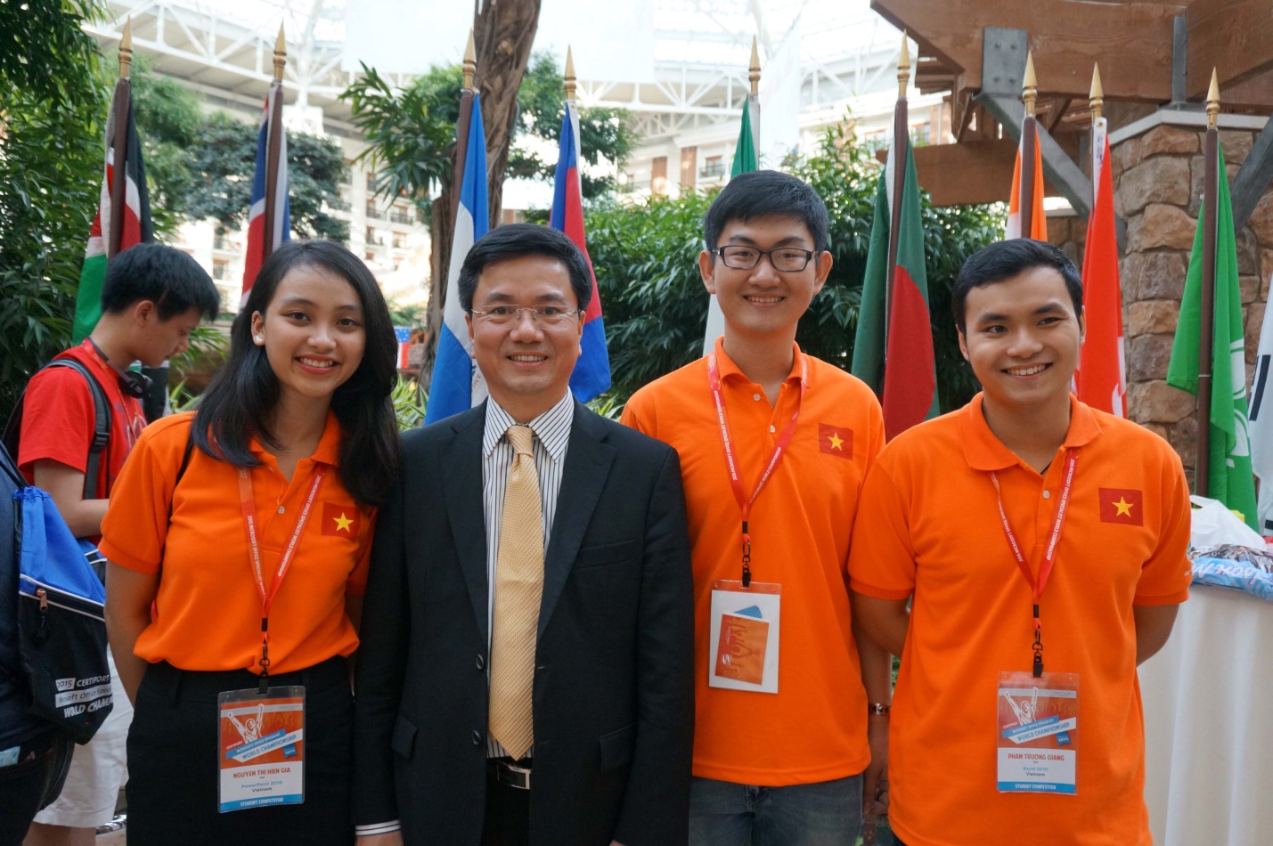 Hào hứng, vui vẻ, thân thiện và đầy tự tin giao lưu với với bạn bè đến từ khắp nơi trên thế giới, 3 gương mặt của đội tuyển Việt Nam nổi bật trong buổi đón tiếp các thí sinh đến từ các nước tham dự VCK Cuộc thi Vô địch Tin học văn phòng Thế giới – MOSWC 2015 được tổ chức tại thành phố Dallas, Texas, Mỹ.